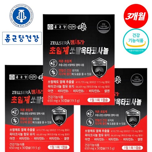 종근당 쏘팔메토 옥타코사놀은 3개월분이 들어 있는 편리한 패키지로 제공됩니다. 1일 1정씩 섭취하면 90일 동안 전립선 건강을 유지하는 데 필요한 영양소를 제공합니다. 이로 인해 복용을 잊을 걱정이 줄어들고, 전반적인 남성 건강에 대한 지속적인 지원을 보장할 수 있습니다.